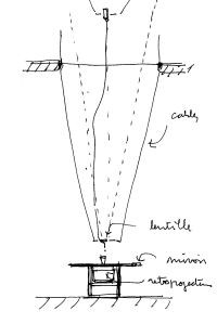 « Duralex » sera installé au sein du beffroi jouant de son architecture, de sa fonction et de sa dimension symbolique. Un miroir, un verre d’eau, un reflet lumineux vacillant dans le puit central de l’ancien donjon inscrivent au cœur de la tour de pierre un temps suspendu et éphémère, une infime vibration dialoguant avec celle, autoritaire et régulière de la cloche de bronze ancestrale.