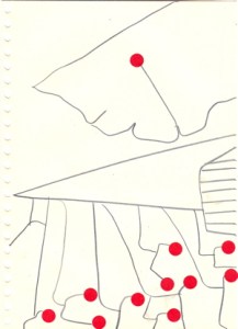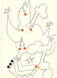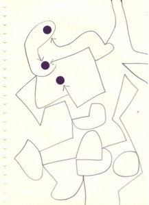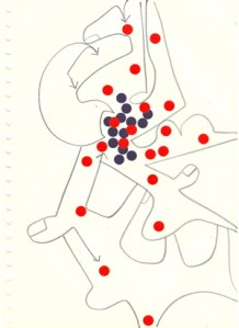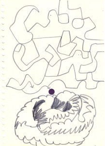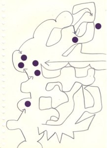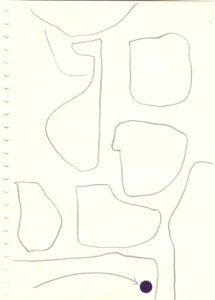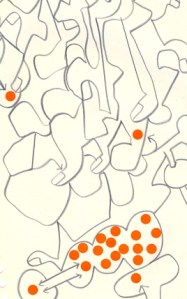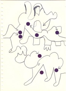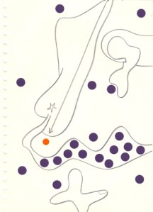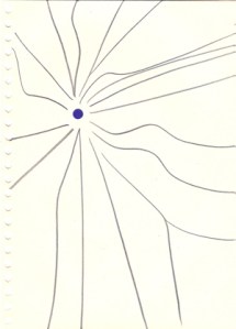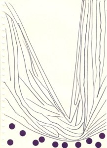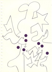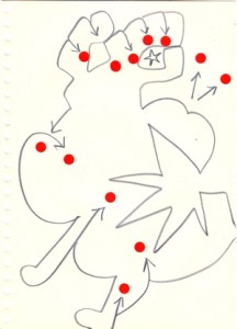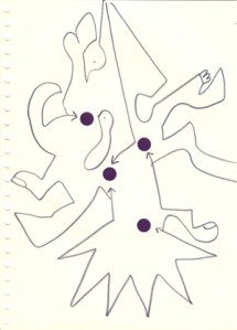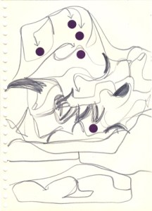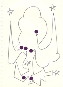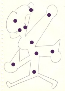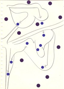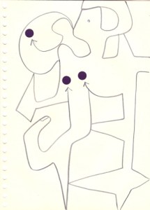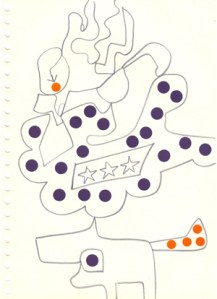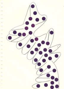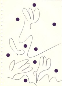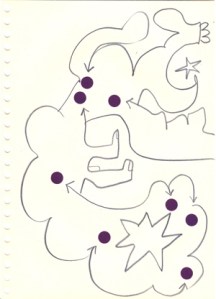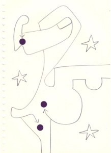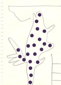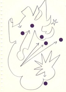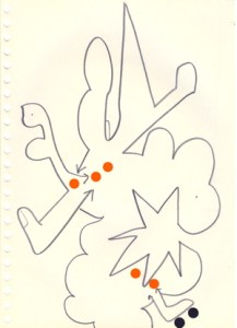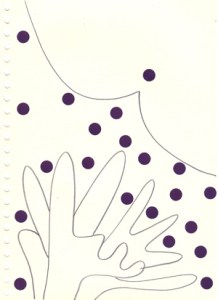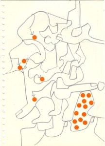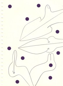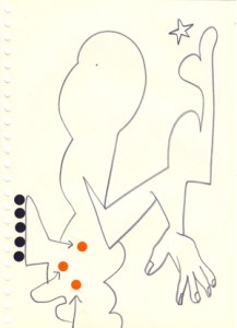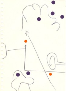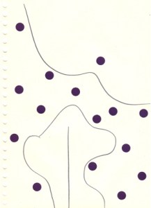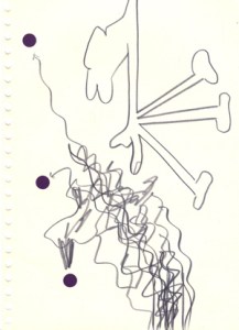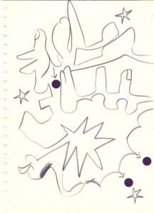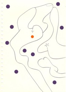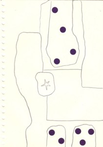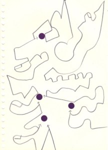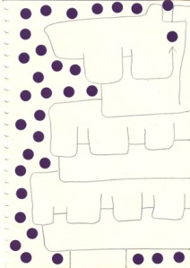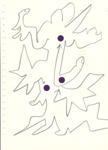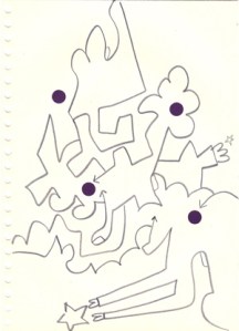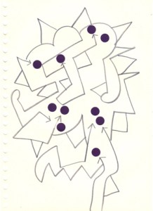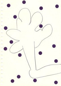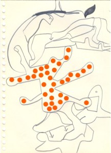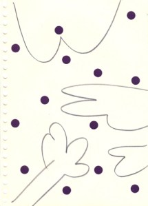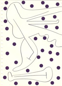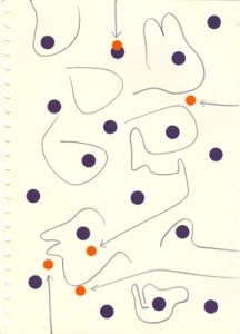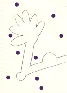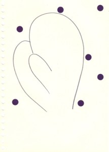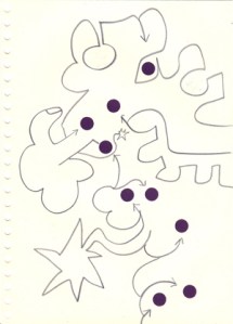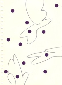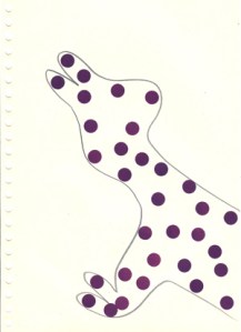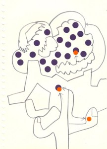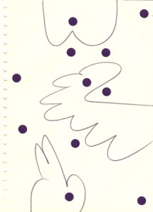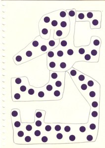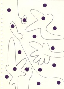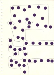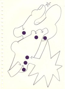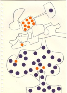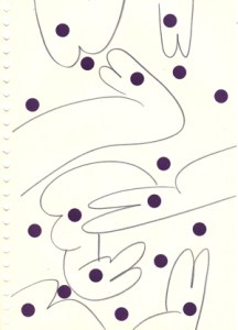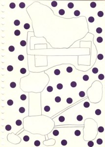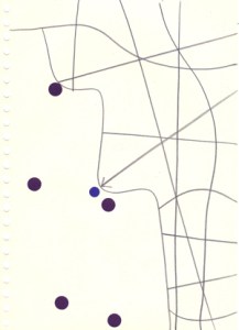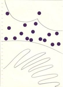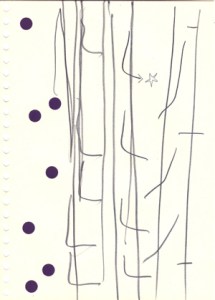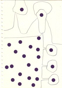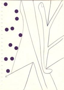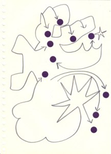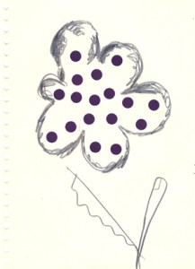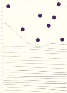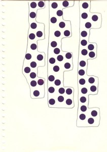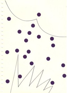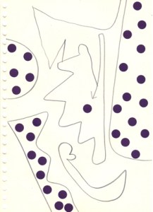 mine noire et gommettes sur papier