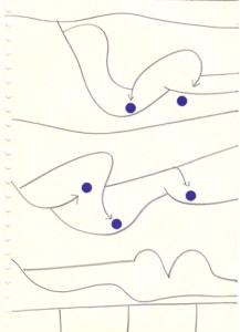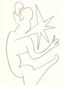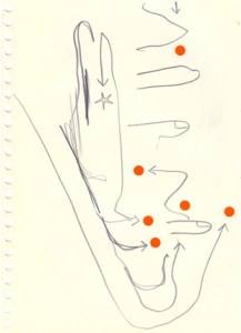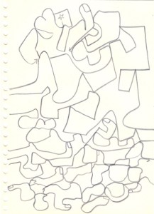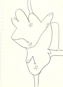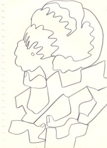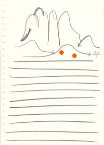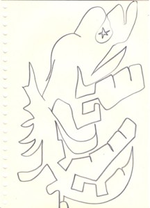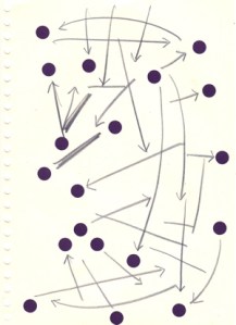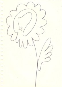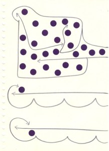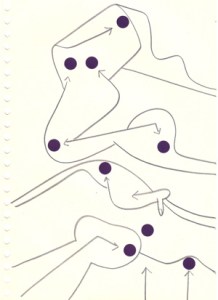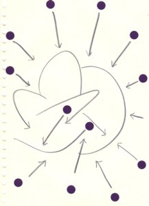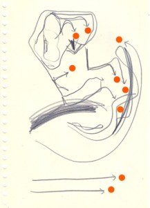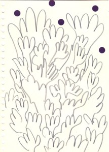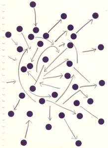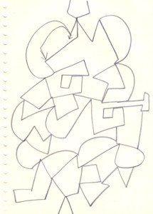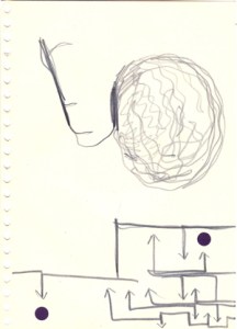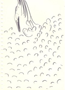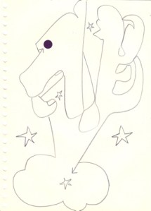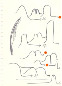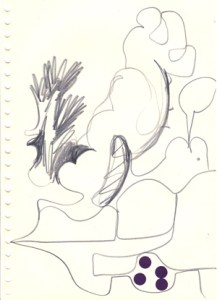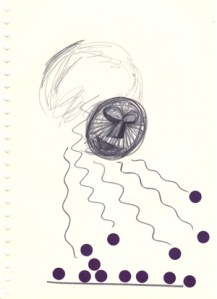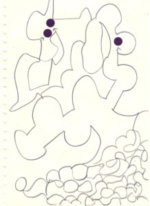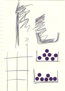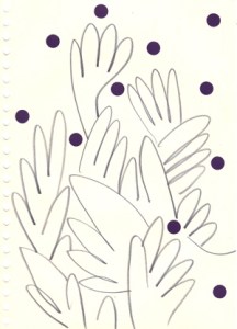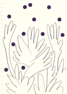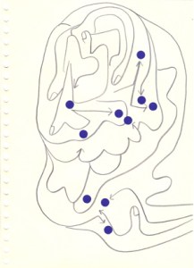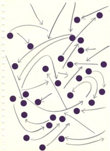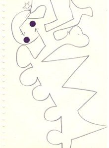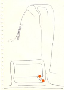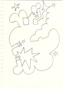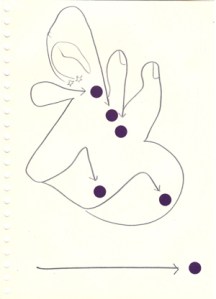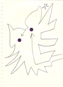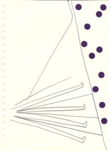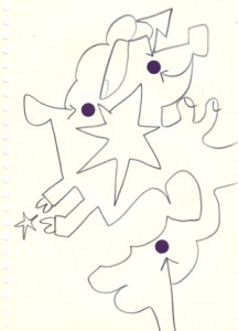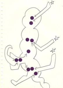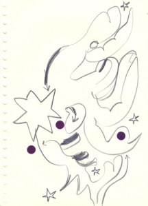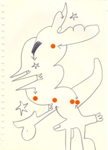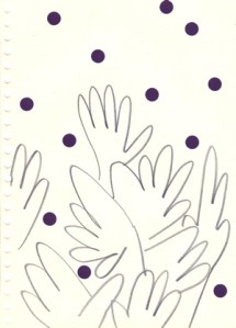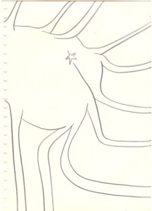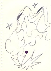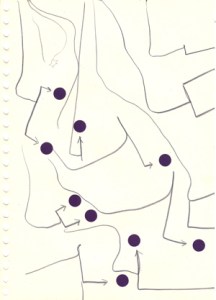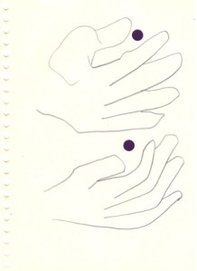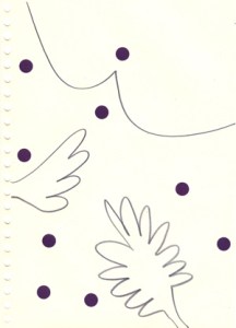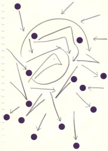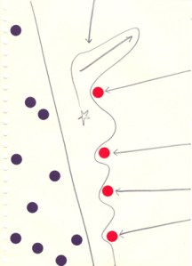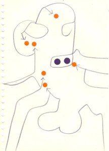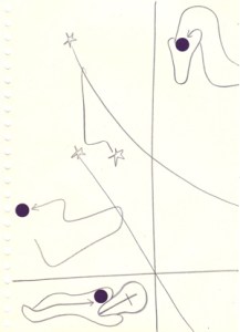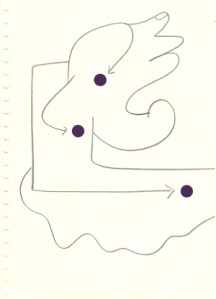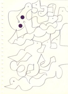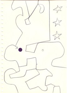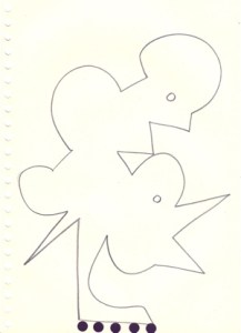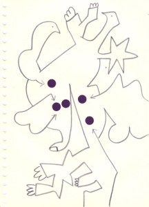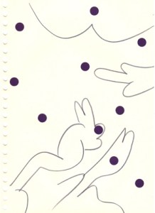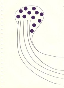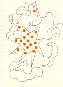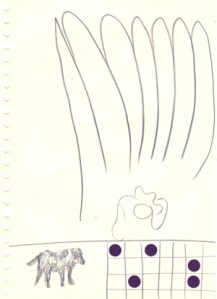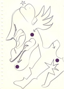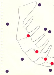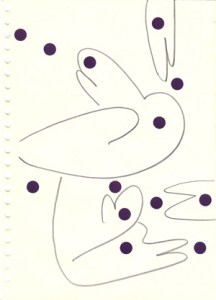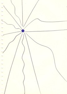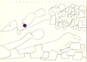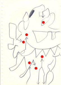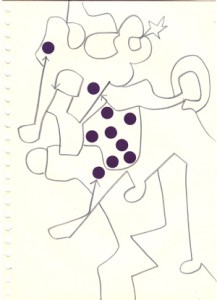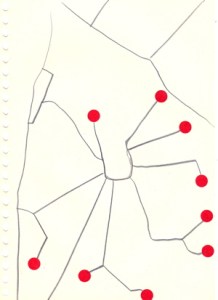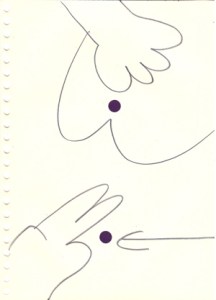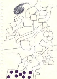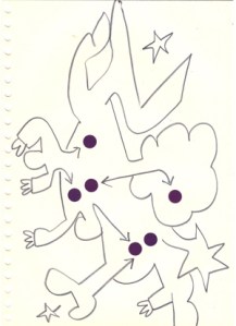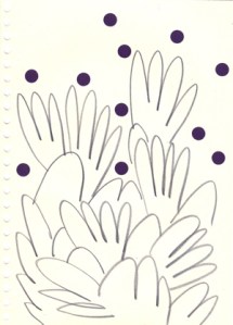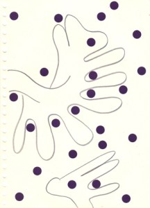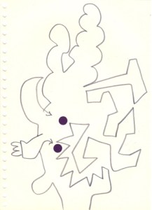 mine noire et gommettes sur papier