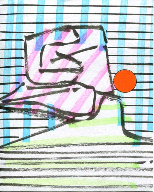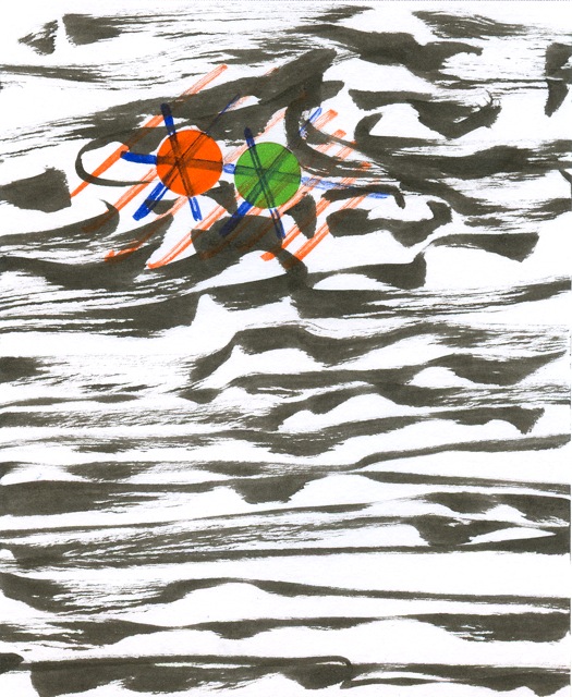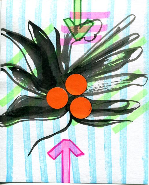 encre, feutre et gommettes sur papier