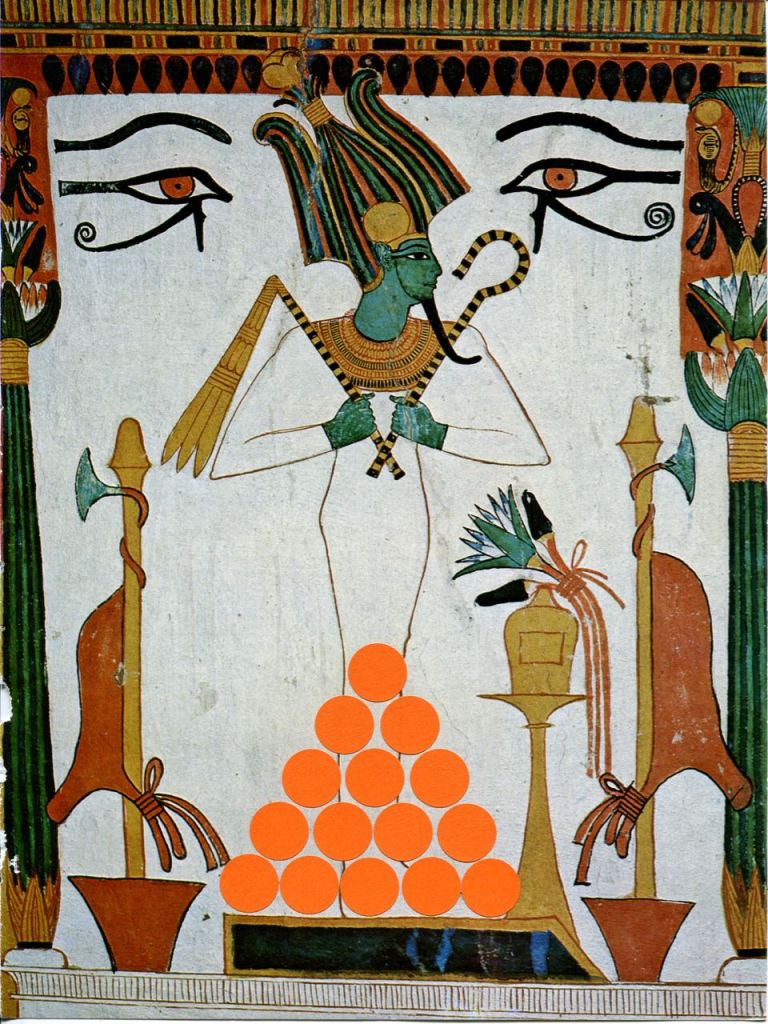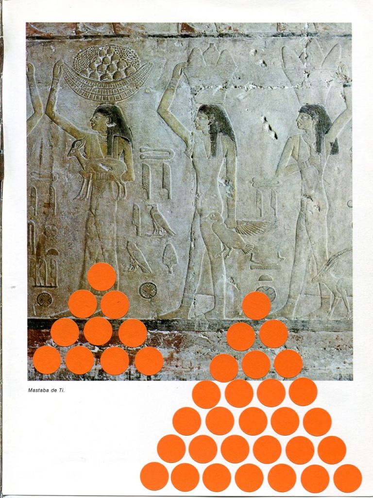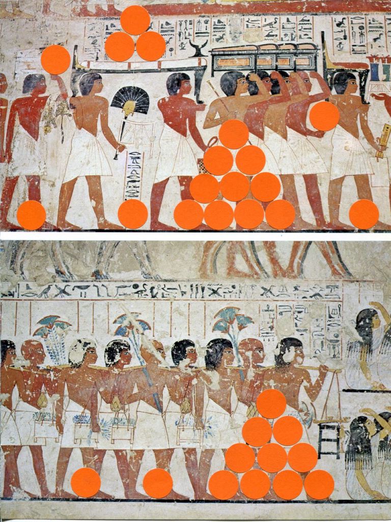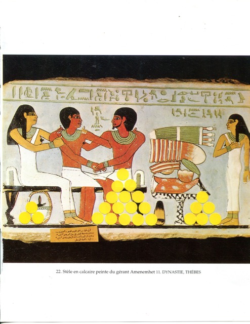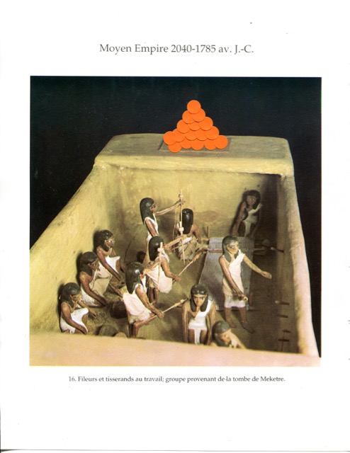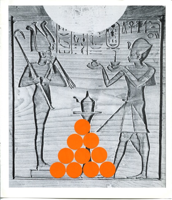 OFFERING / gommettes sur pages imprimées / tentative de lien temporel entre l’Egypte antique et maintenant, offrandes virtuelles déposées sur la page au-delà des siècles, en y pensant très fort