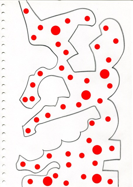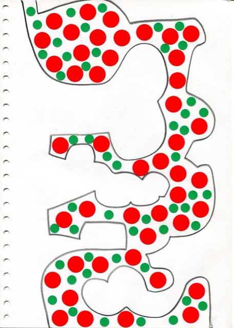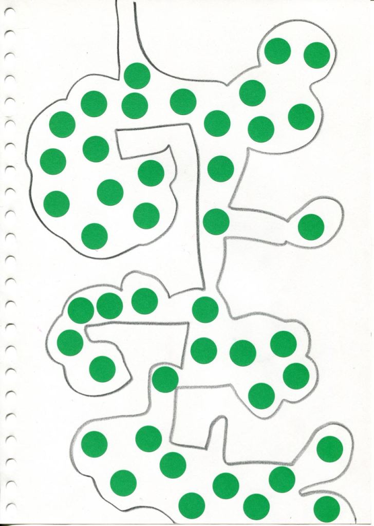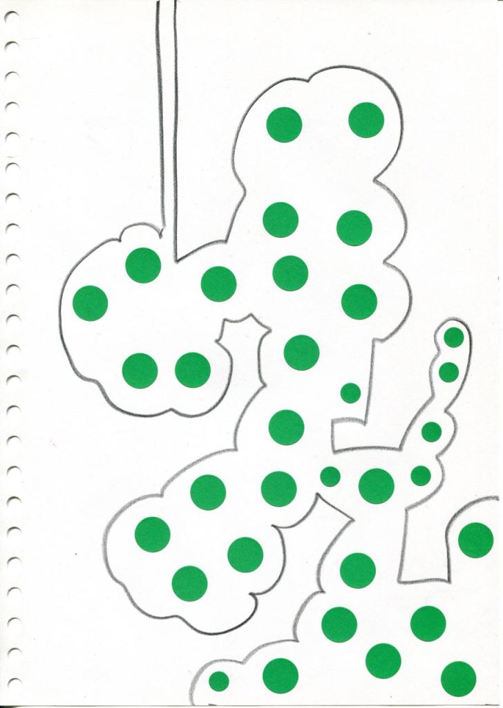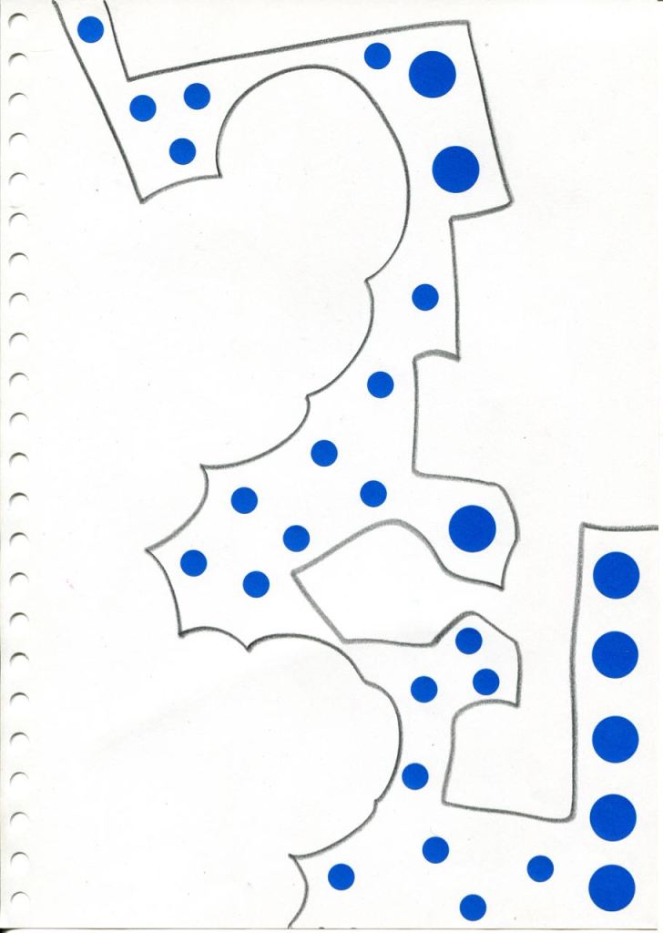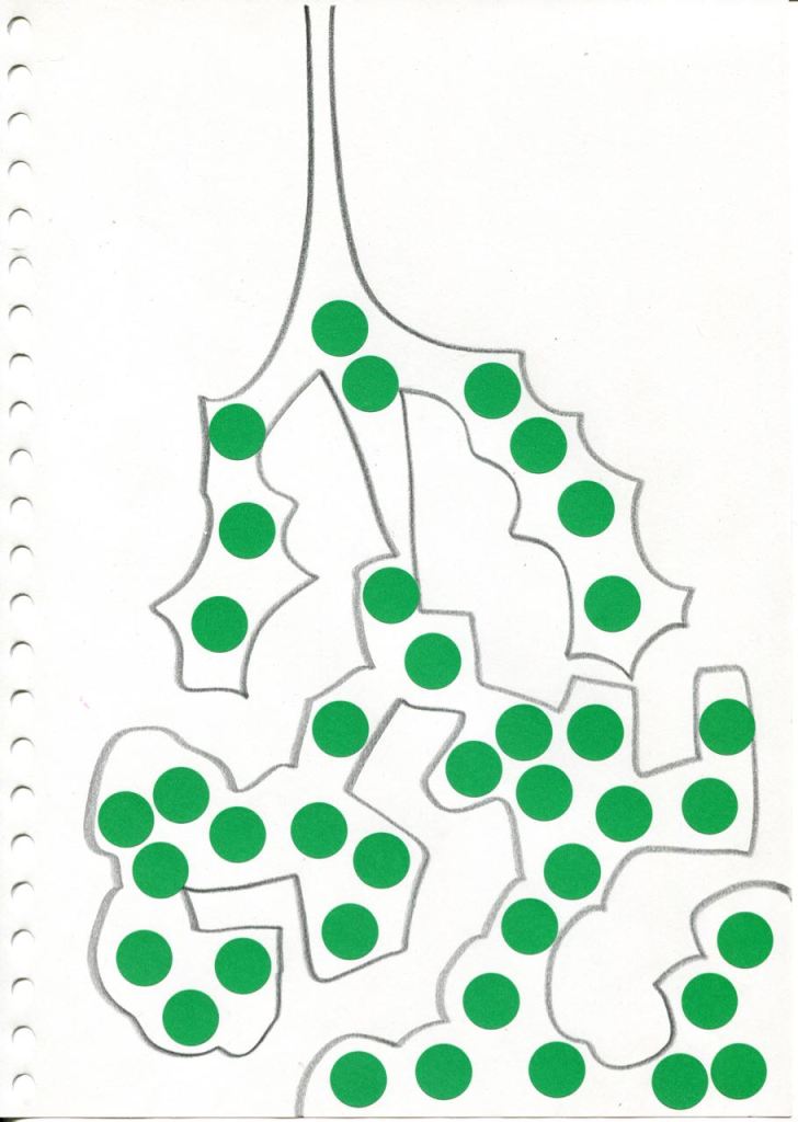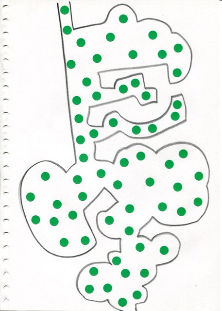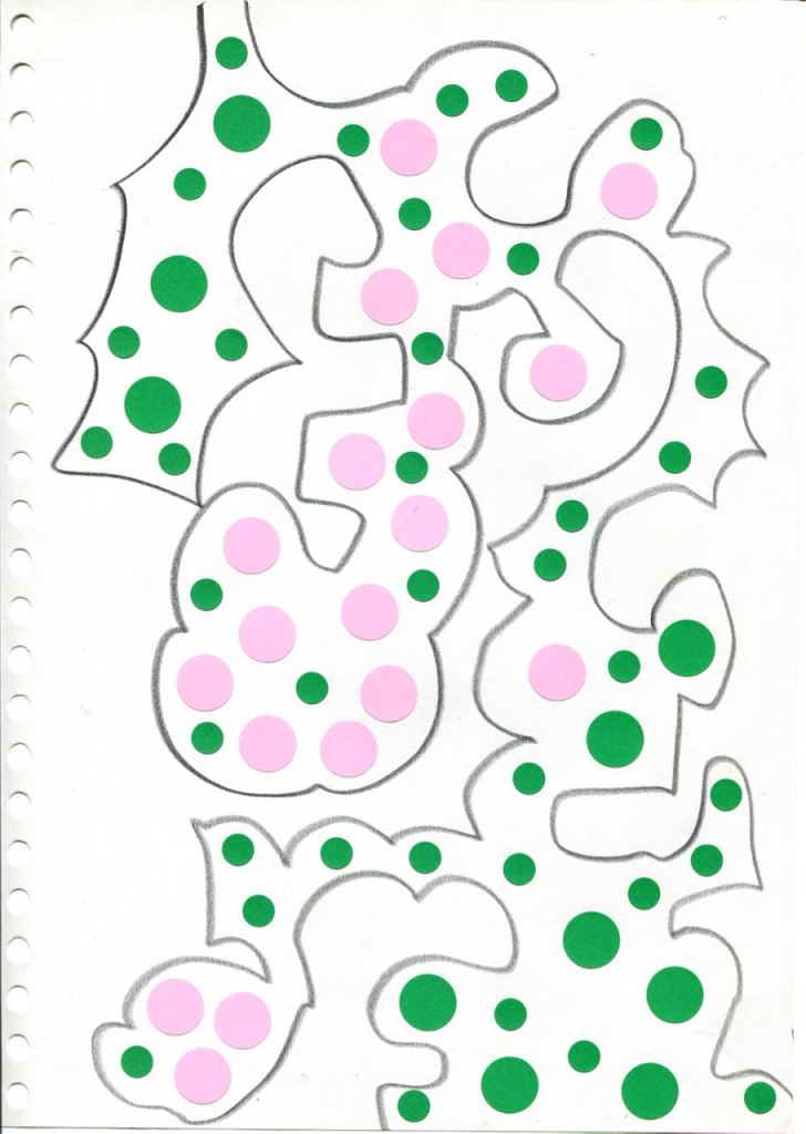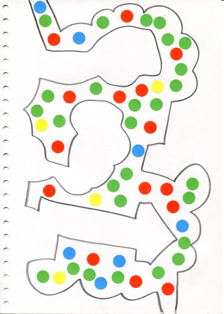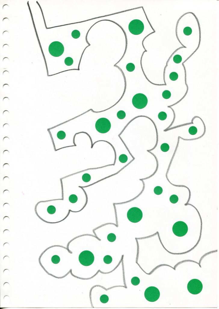 dessins à la mine noire sur papier et gommettes