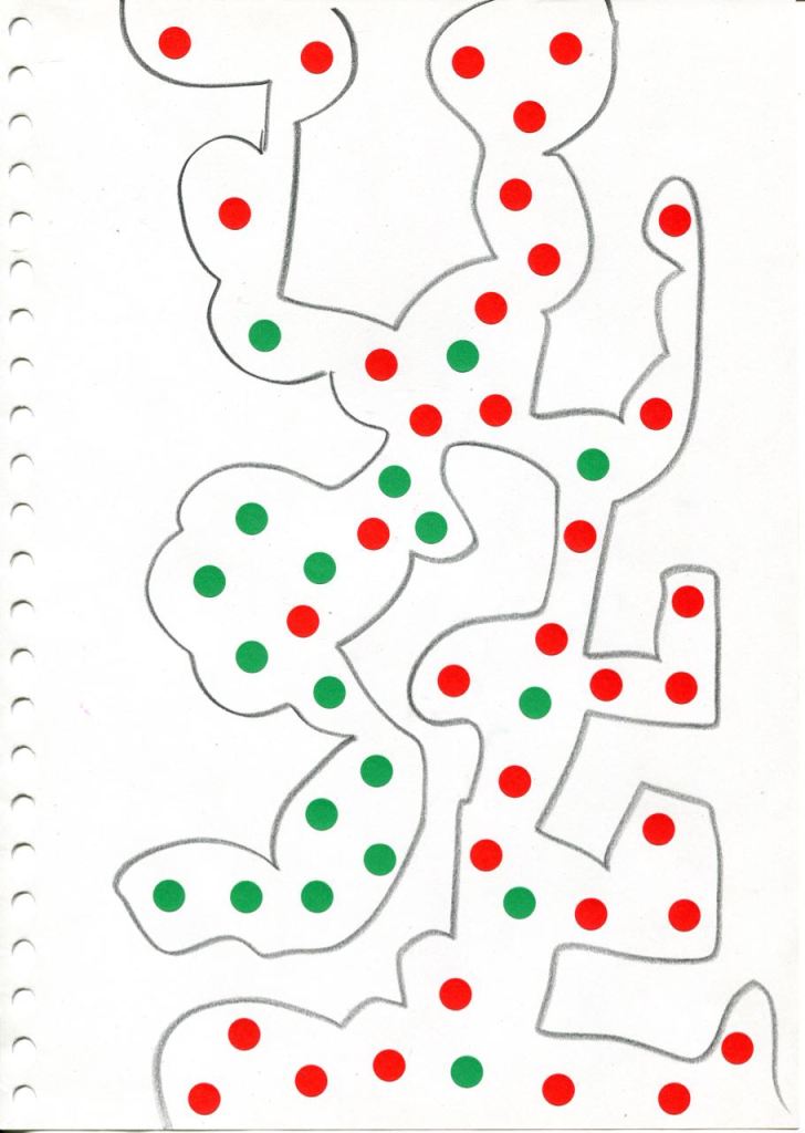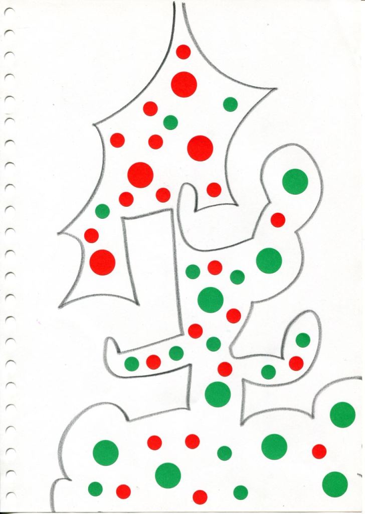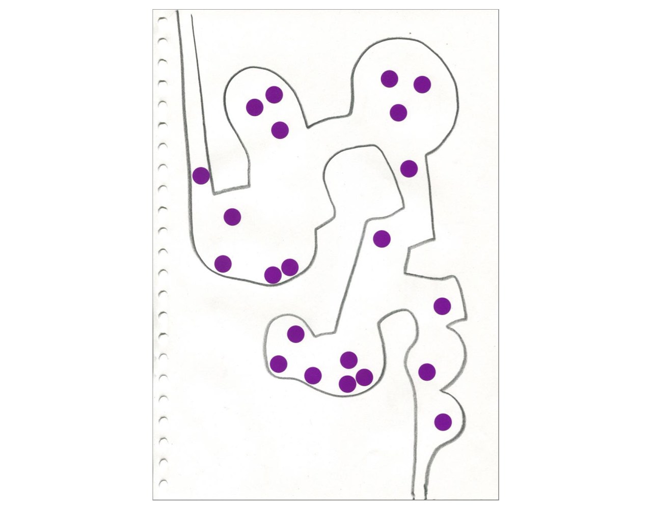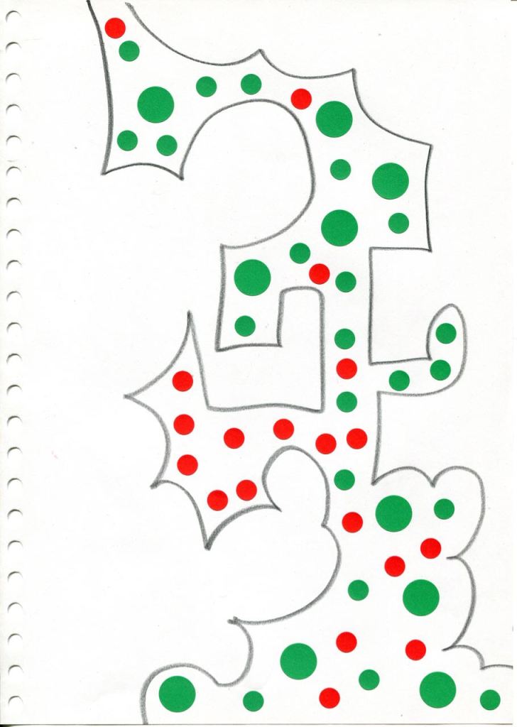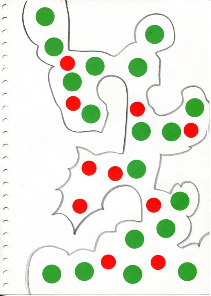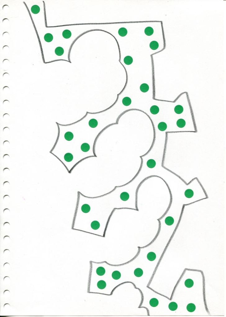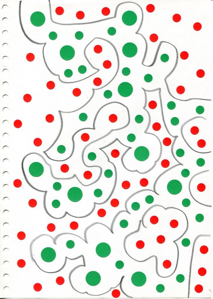 dessins à la mine noire sur papier et gommettes