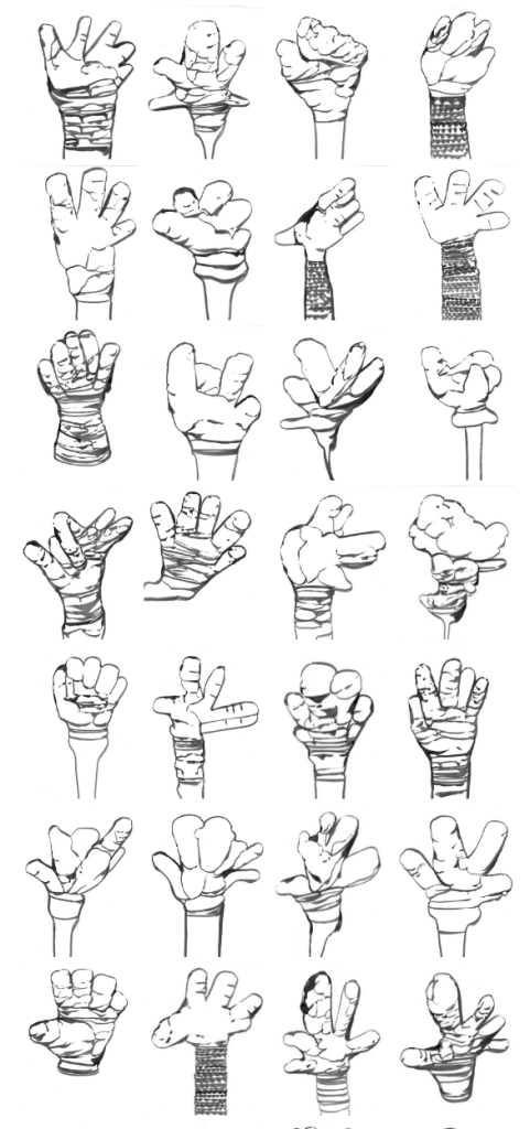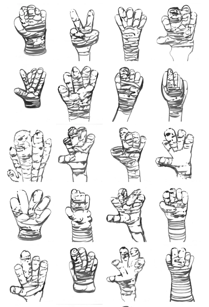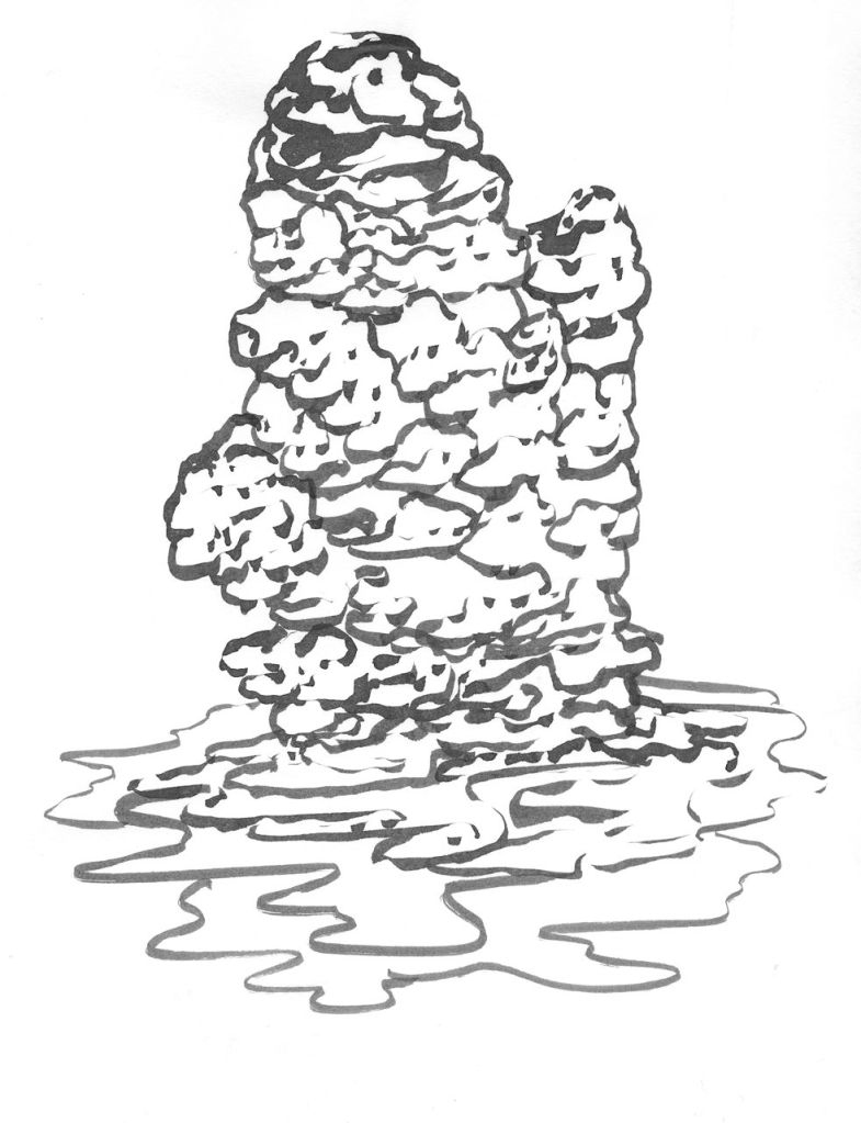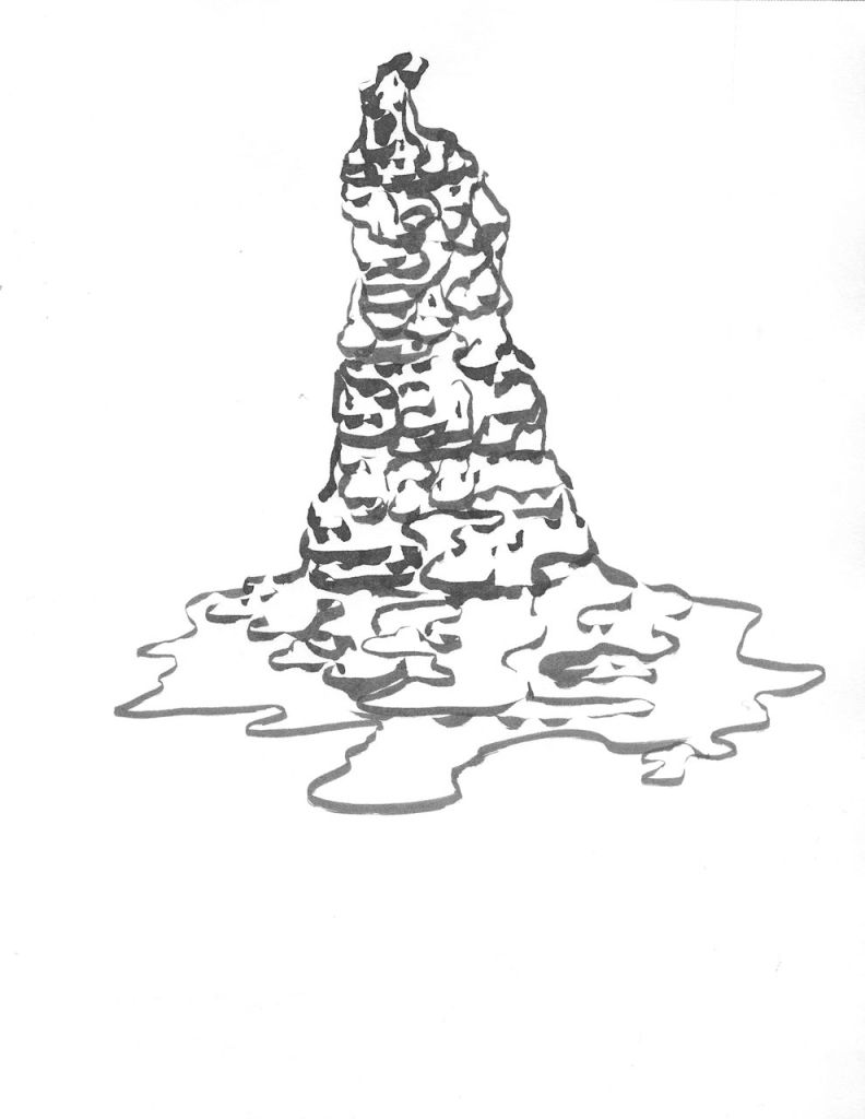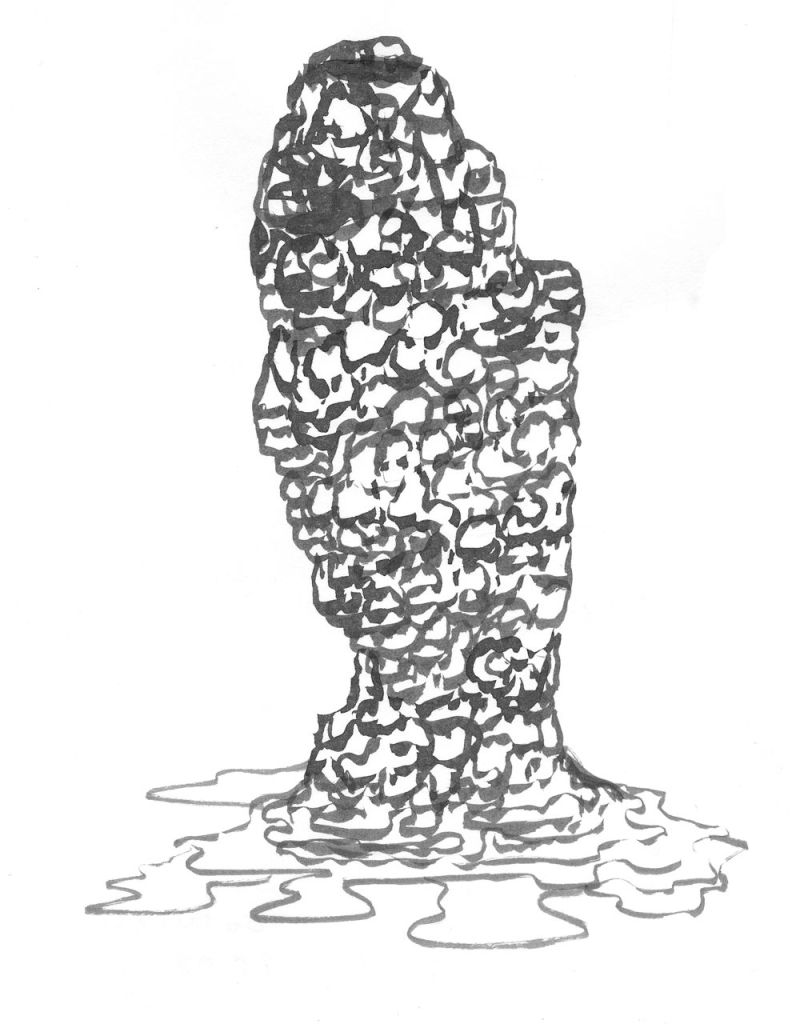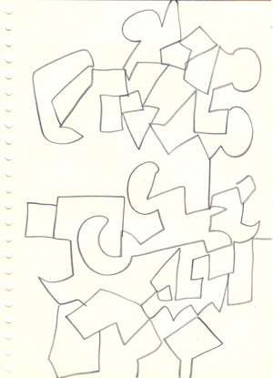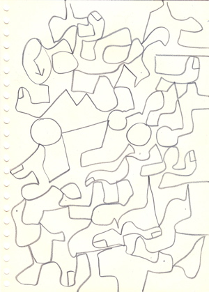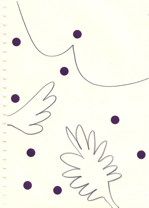 dessins à la mine noire et gommettes