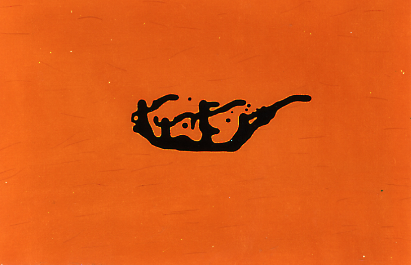 peinture sombre coulée sur fond orange avec poils de pinceau