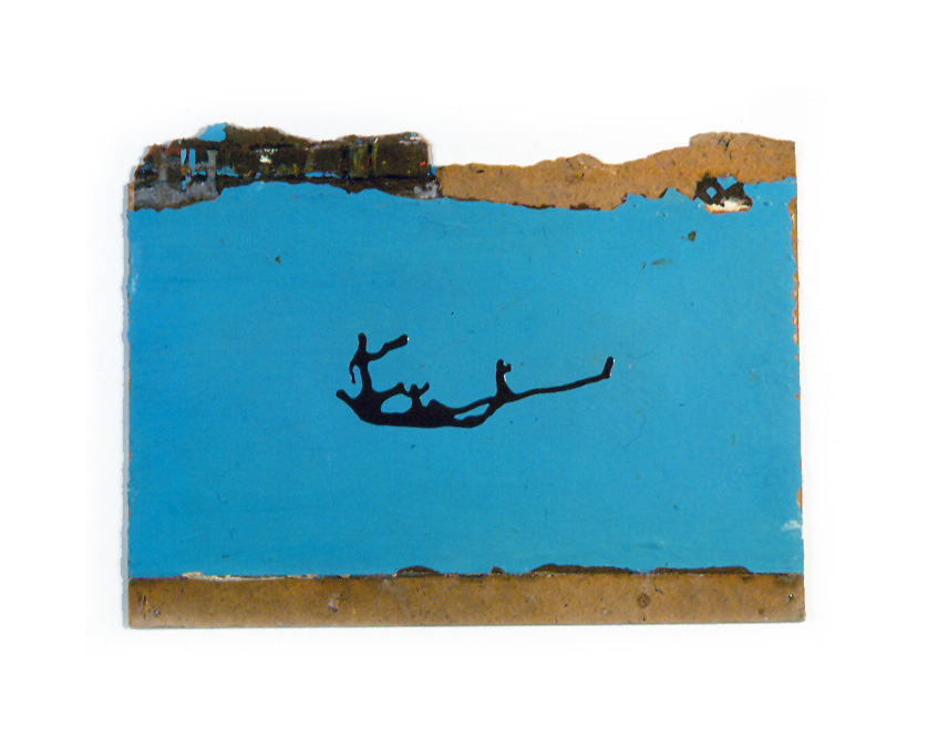 coulée de peinture sur planche d’isorel peinte récupérée