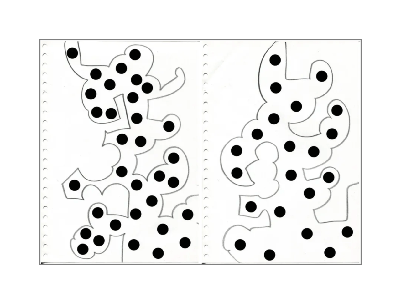 dessins à la mine noire et gommettes